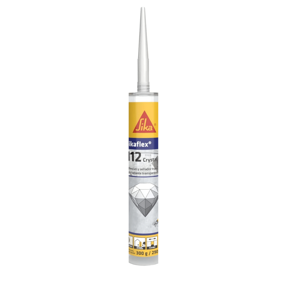 El Sikaflex-112 Crystal Clear en cartucho de 290 ml es un adhesivo y sellador elástico de un solo componente, con acabado totalmente transparente, ideal para aplicaciones donde se requiere una unión o sellado discreto y estético.